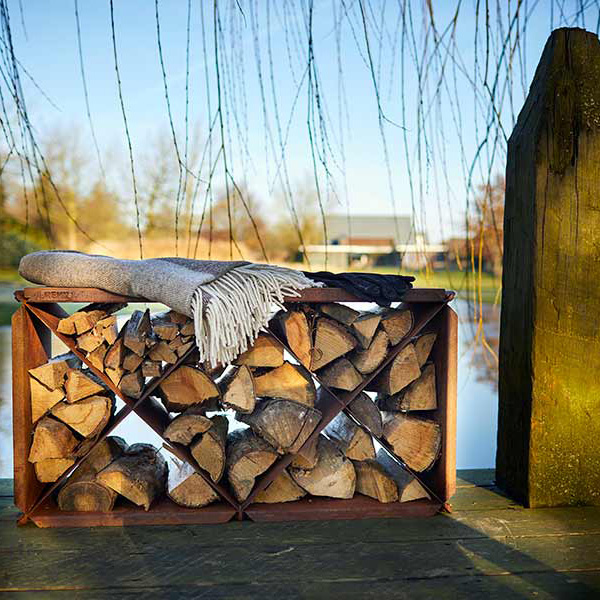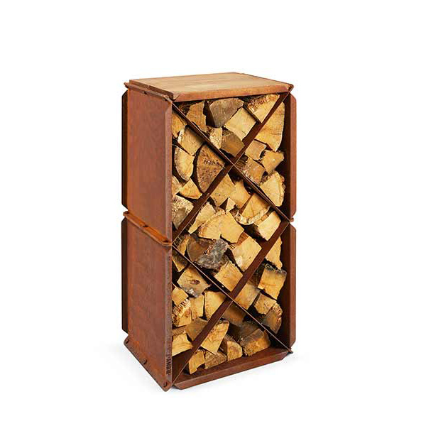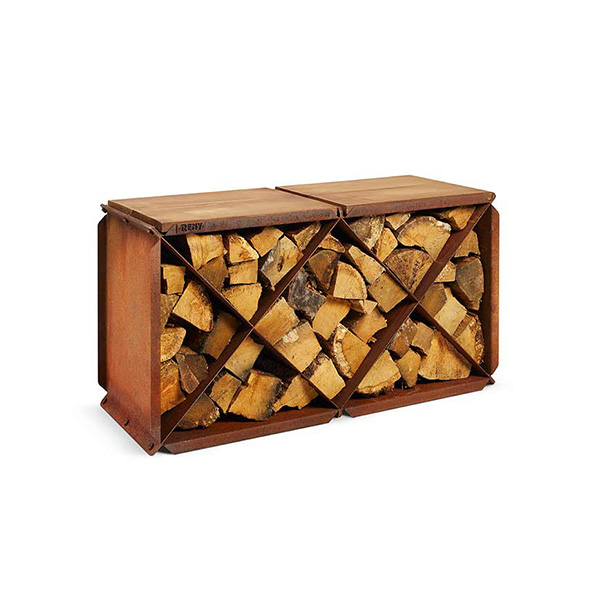 The Wood storage/Bloxx is a handy wood store from RB73. It is made of 2mm CorTen steel. It is a beautiful accessory to put beside the outdoor fireplace, and it forms a beautiful and attractive setting. It is a combination of wood storage and seating furniture. Thanks to the division, you can nicely separate the production and firewood from each other. Optionally, a hardwood seat can be purchased, creating a bench on which you can sit and enjoy the flames and warmth of the fireplace.